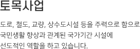 건축, 토목, 기전, SOC 전 부분에 걸쳐 우수한 기술력을 바탕으로